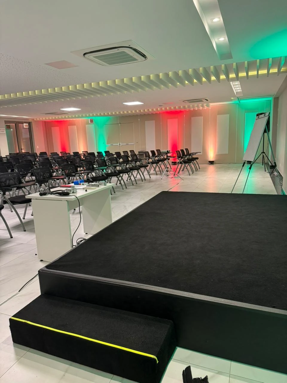 Palcos bem estruturados proporcionam segurança para os artistas e palestrantes, além de transmitir uma imagem profissional para o público.