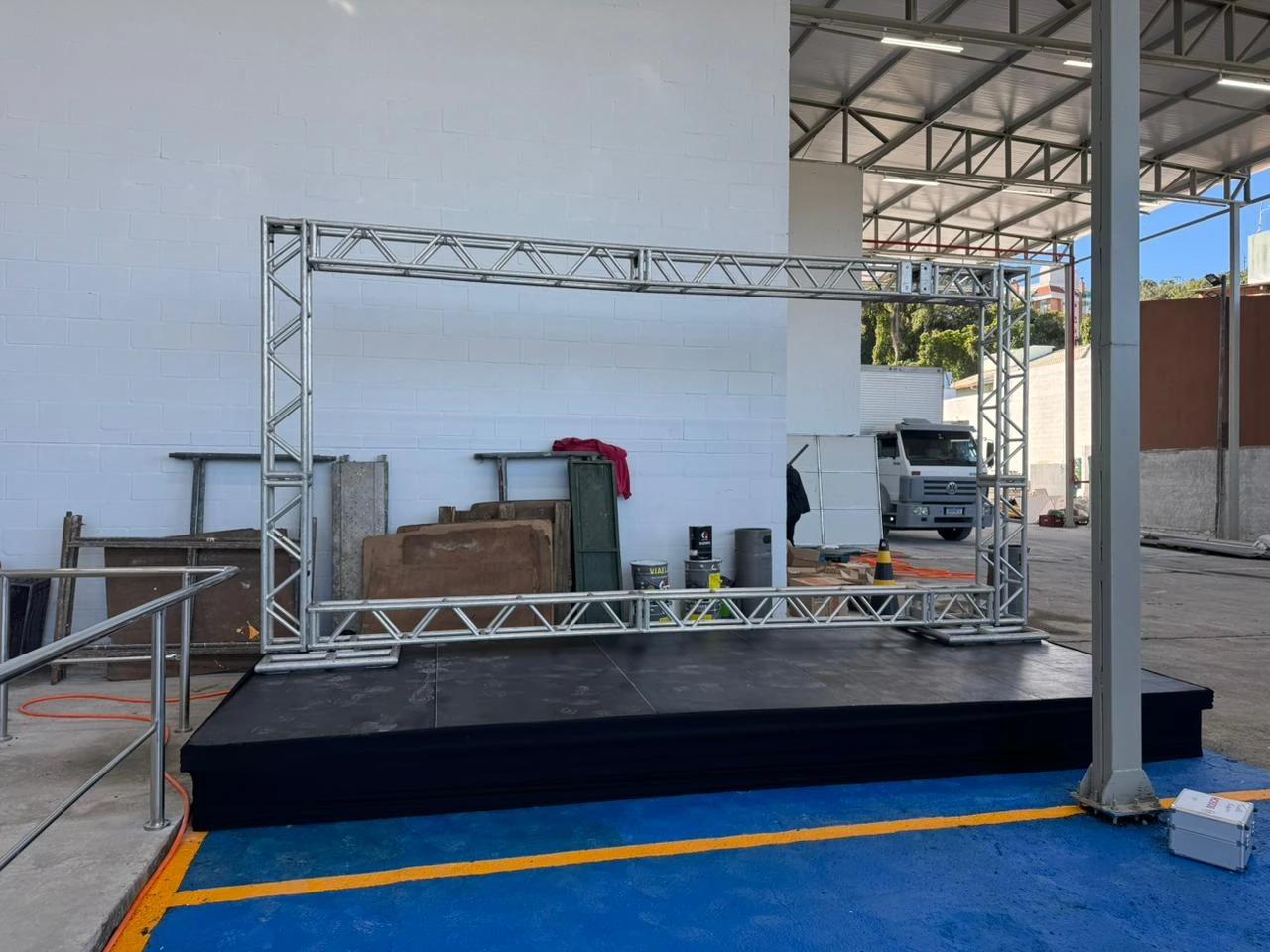 A estrutura para eventos oferece soluções completas para suportar palcos, painéis de LED, backdrops e demais elementos cenográficos, promovendo estabilidade e segurança em diferentes tipos de eventos.