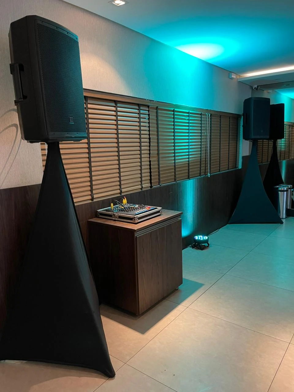 A escolha dos equipamentos, como caixas de som, microfones e controladores, é feita de forma estratégica para assegurar a melhor qualidade sonora possível.